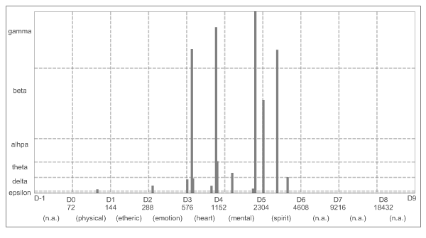 BB states for binaural or differential beat (pulsation) generated by peaks within the significant frequency band; note that at multiple peaks per band (more than 2) - there are multiple BB's listed, yet reduced according to audible overlapping pulsations.